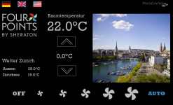 Mit Tastendruck auf sparsame Energielösung umstellen. Wer hätte sich das nicht schon gewünscht? Nichts einfacher als das. Mit einem Tastendruck auf dem Touchpanel geht das Zimmer auf den für die Umwelt sparsamsten Betriebsstatus und reduziert bewusst gewisse Komfortkriterien zum energieeffizienten Gadget. Vielleicht kommt in Zukunft der Rabatt in Abhängigkeit dieser Taste?
